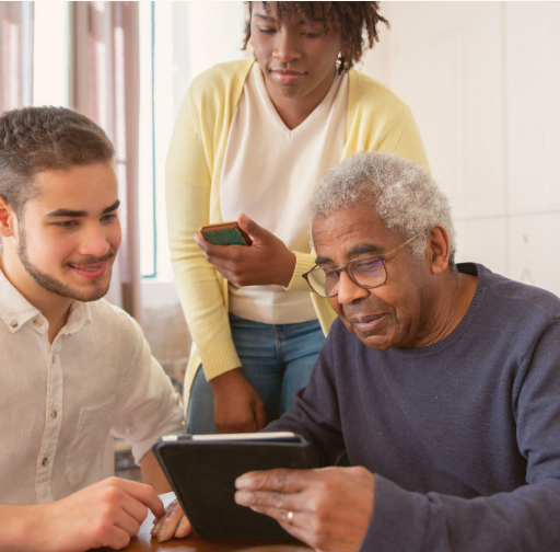 Unsere erfahrene und gut ausgebildete Pflegefachkraft besucht Sie zuhause und geht mit Ihnen das Formular Ihrer Pflegeversicherung durch.